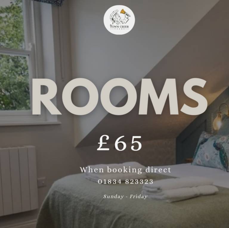 To take advantage of our fantastic January discounts, please contact us on 01834 823323 email: enquiries@towncriertenby.co.uk or book a table online.